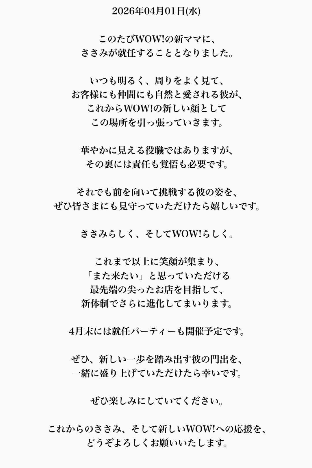 この度は、お忙しい中WOW!の